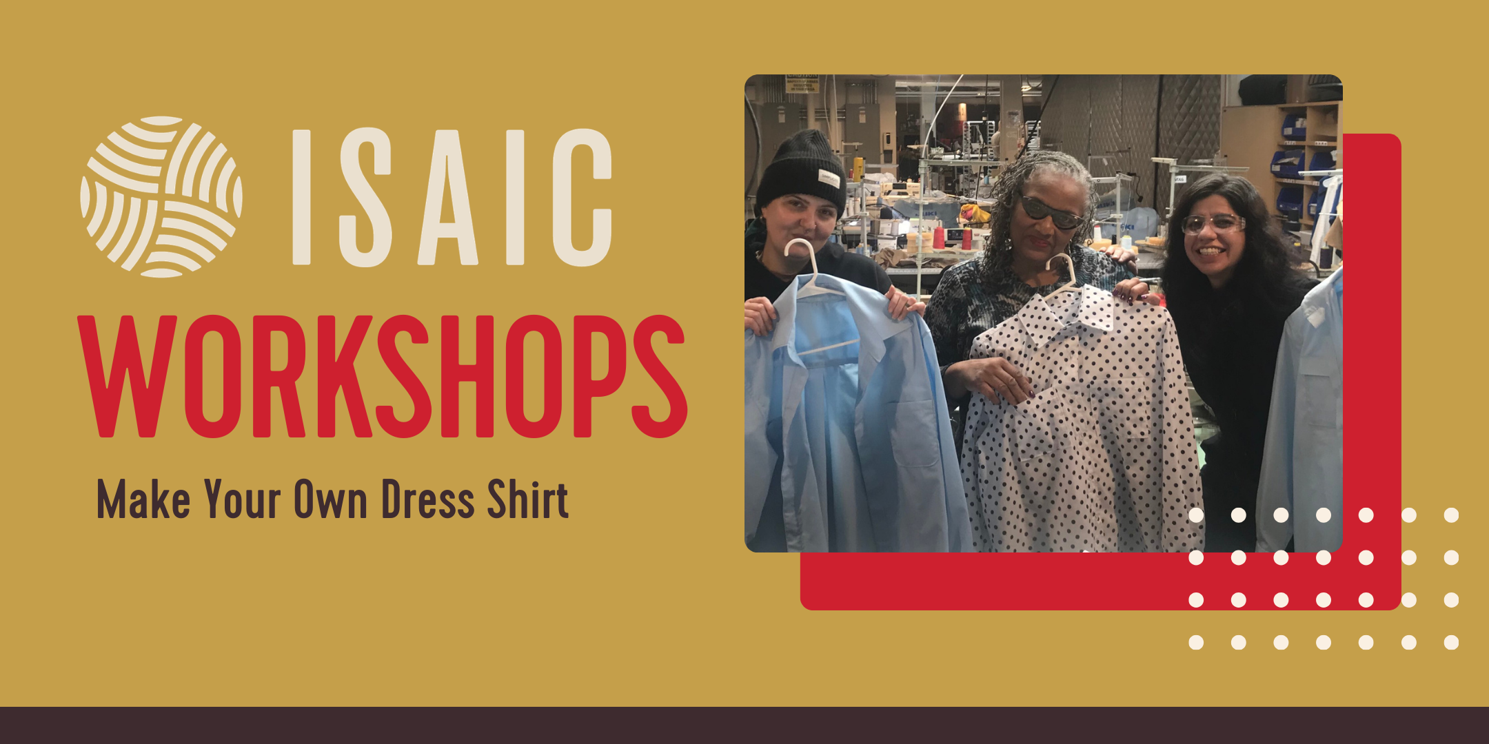 In this hands-on workshop, participants will create their own custom dress shirt. All materials are provided, along with optional training and assistance throughout the session.